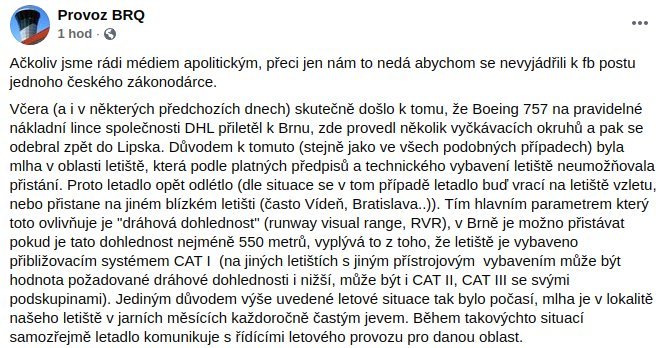 Hele, mlha, to se hodí.. Tak to tam pojďte párkrát přeletět a svedeme to na ní, když si někdo všimne.