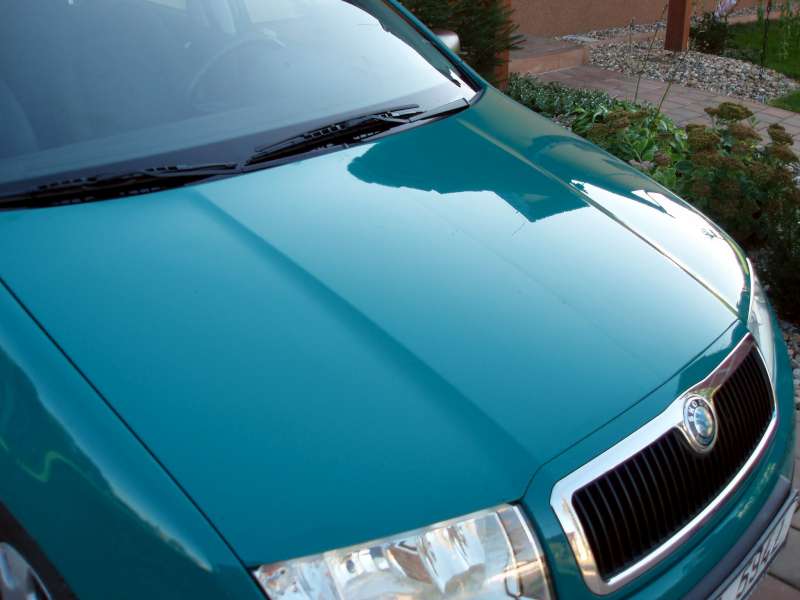 Protože celé auto bylo kolem dokola podřené, poťukané (nejvíc samozřejmě kapota), tak jsem ho ještě obešel opravnou lakovou tužkou. Kapota vypadá jak po neštovicích, ale zdálky to vidět není: