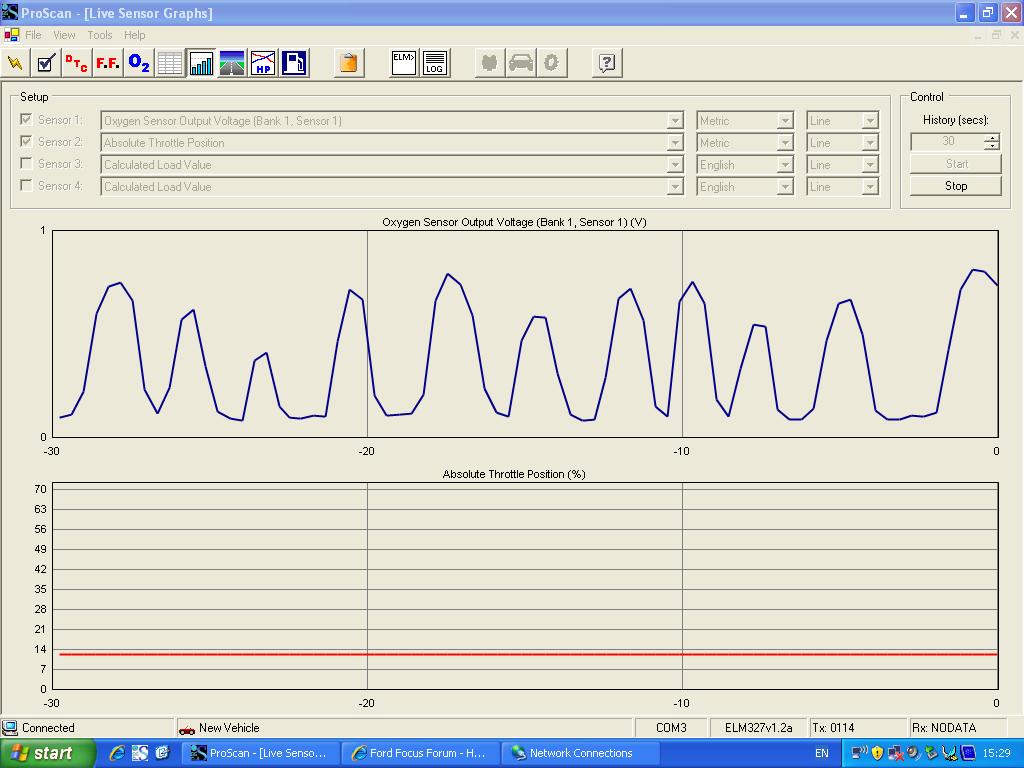 uz mi prisiel diagnosticky kabel, trocha som sa s tym pohral a chcem sa spytat co si myslite o tomto vystupe z MAF... Co som cital napetie na senzore by sa malo zvysovat s otackami ale podla toho programu stale len osciluje (cca 0,2 - 0,8V) ked sa prida plyn osciluje to rychlejie ale v tych istych urovniach napetia a aj to nepravidelne. Niekedy sa na grafe objavi aj rovna ciara
