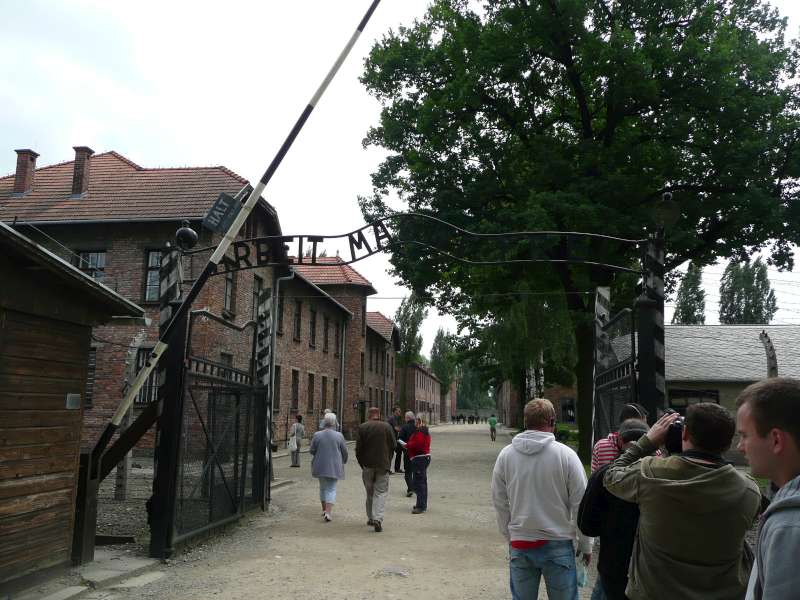 Procházeli jsme pomalu celý tábor. Katastrofa. Chcete vidět cely, plynové komory, kremační pece, 2 tuny vlasů, několik tisíc fotografii vězňů, celou místnost naplněnou botama, operační sál na pokusy doktora Mengelého? Tak doporučuji.