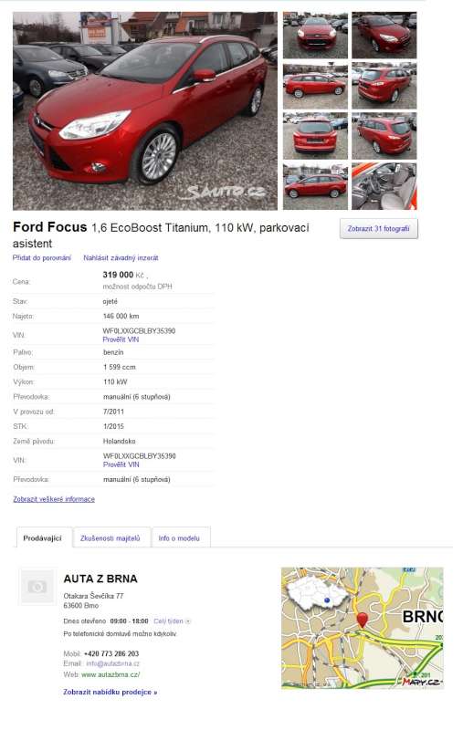 Adow píše:V pondělí jsem ještě zkoušel jiný auto - http://www.tipcars.com/ford-focus/16tdc ... 27409.html. Lákavá výbava i cena, kilometry v pohodě (udaných 86 000 km). Auto ale vypadá opotřebovaněji, jde špatně řadit trojka atd.. Tak jsem to zkusil přes fordzonu.sk (teď zase funguje) a tam je mimo jiné: 02-12-2010 ... 142910 Km. Už teď lituju chudáka, co si to koupí..