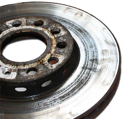Něco jsem pohledal a u mě nejspíš došlo k přehřátí brzd. Kdy se na kotouči vytvoří vrstva cementitu. Ten je vedlejším produktem litiny, materiálu ze kterého je kotouč. Jedná se o takové černé drážky, které nejdou brzděním vyleštit.