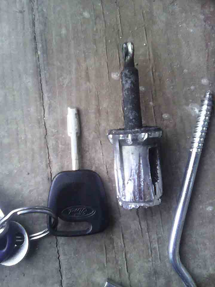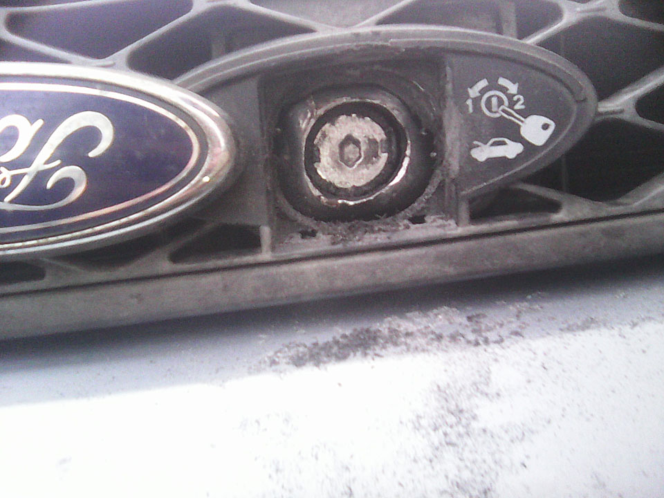 Zavolal jsem do servisu, kde řekli jen "Ajajaj". Přijel jsem tam, koukli jsme spolu do sousedního Fokuse a žádný rozumný nápad neměli. Rozhodl jsem tedy, že budu jezdit bez zámku a otvírat haubnu šroubovákem. Postupoval jsem tedy zepředu , kde jsem zámek obvrtal okolo,