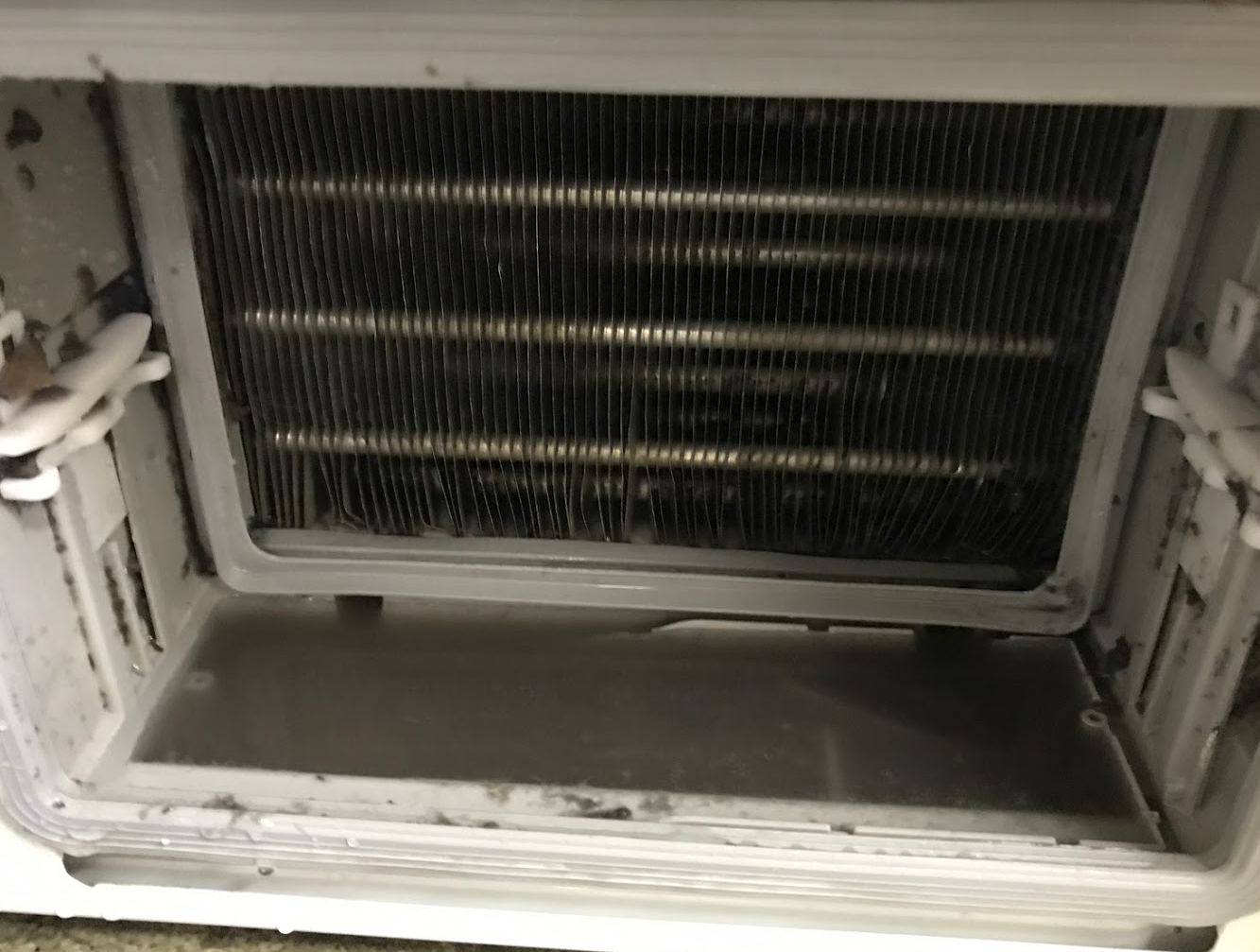 Problém je v tom, že jemný prach časem zanese mřížky výparníku a hlavně ve spodní části se usadí a zamezí odtok kondenzátu k čepadlu.