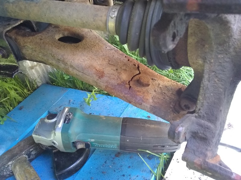 Nedávno jsem měnil přední ramena. Dávám sem fotky levého, ze kterých myslím každého zamrazí. To rameno už někdo přede mnou měnil a dal ho tam nejspíš z nějakého vraku. Byl na něm už vyměněný čep (Delphi), rameno samotné byla nějaká no-name druhovýroba, žádné označení výrobce jsem na něm nenašel.