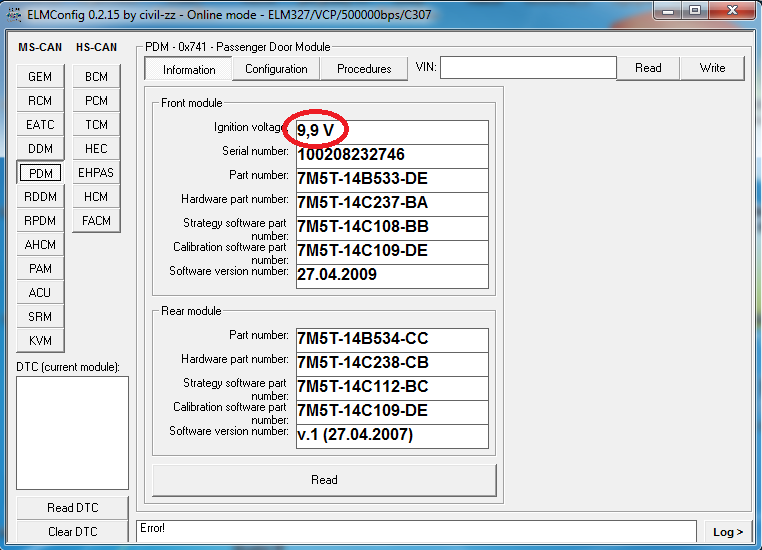 Přes ELM mi ukazuje napětí na dveřních modulech jeden 9.8V a druhý 9.9V. Je to normální?