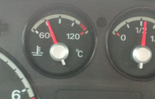 ukazatel teploty chlad.kapaliny se nikdy nedostane na 90 stupňů, většinou se pohybuje kolem bodu viz příloha, ať je venku -20 nebo +30°C