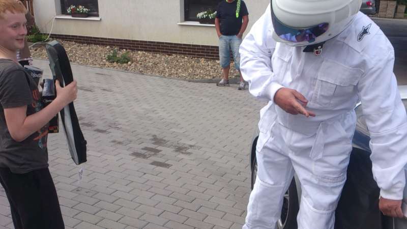 Tak helma i kombineza dorazily, malej bude hotovej. Sehnal jsem ke svezeni Audi R8. Řidiče do toho navliknu a až bude na dvoře, tak mu řeknu: někdo ti přijel popřát k narozeninám. Snad se to povede, dam sem pak fotky.