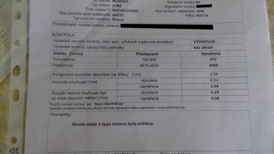 To bylo na me? Reakce na protokol? Ty woe, auto sem si nechal zmerit sakra poctive, pekne s vytacenim pomalu do omezovace, cca 4x nebo 5x. A to co vylezlo je proste super, jezdi tam mnohem mladsi auta se zdaleka ne polovinu najetyma km a proste jsou v cervenych cislech. Ja se nedostal ani jednou. Byl jsem u toho a chtel sem vedet jak na tom opravdu je, zadne prachy bokem bez vytaceni, jen at to projde na oko.