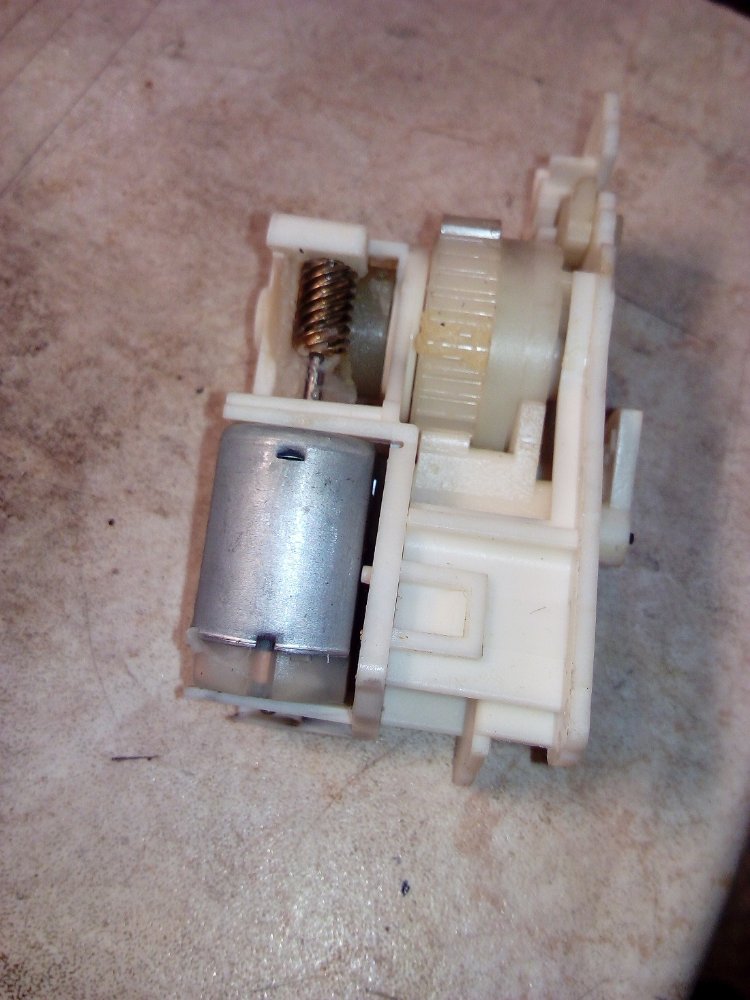 Ten tam neni pripajkovany,je nastrceny na 2 koliky,ktore sluzia ako kontakt.Cely problem spocival v tom ze motorcek vyzeral ok.Po pripojeni na 12V sa tocil,aj nejaku tu silu mal.Ale nevladal potocit tym bielym ozubenym kolesom,pod ktorym je stocena pruzina,ktora ho vracia do stredovej polohy.Tak som motorcek rozobral. 2 male pliesky drzia plastovy kryt,ktory drzi kontakty s uhlikmi.Vnutri bordel,mastnota a takmer uplne odpalene pliesky s uhlikmi.Taky isty motorcek som samozrejme nemal tak som improvizoval a vybral pliesky s uhlikmi z ineho.Jasne ze to nepasovalo,ale vsetko sa da prisposobit.Ocistil som aj kontakty rotora a zlozil.Motorcek mal uplne iny zvuk aj silu.Po zlozeni funguje zamok na 1.