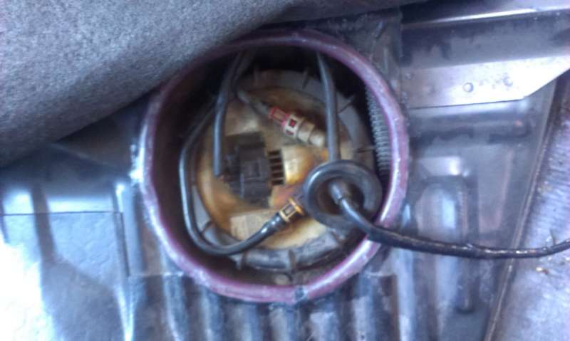 Já jsem nedával nový konektor, prostě jsem to očistil a připájel. (A taky jsem si vystříhal díru v plechu nad čerpadlem, abych nemusel sundávat nádrž.)