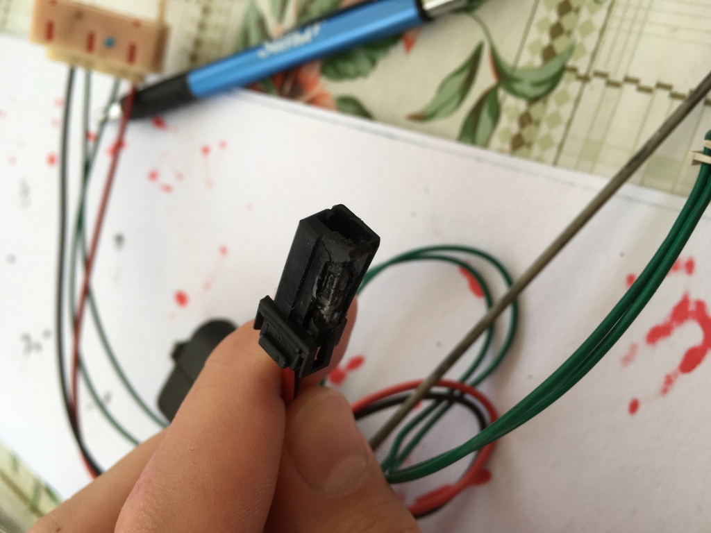 Já jsem nedával nový konektor, prostě jsem to očistil a připájel. (A taky jsem si vystříhal díru v plechu nad čerpadlem, abych nemusel sundávat nádrž.)