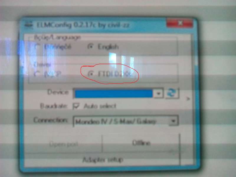 Po nastavení na FTDI elmconfig nenajde připojení kablu viz foto