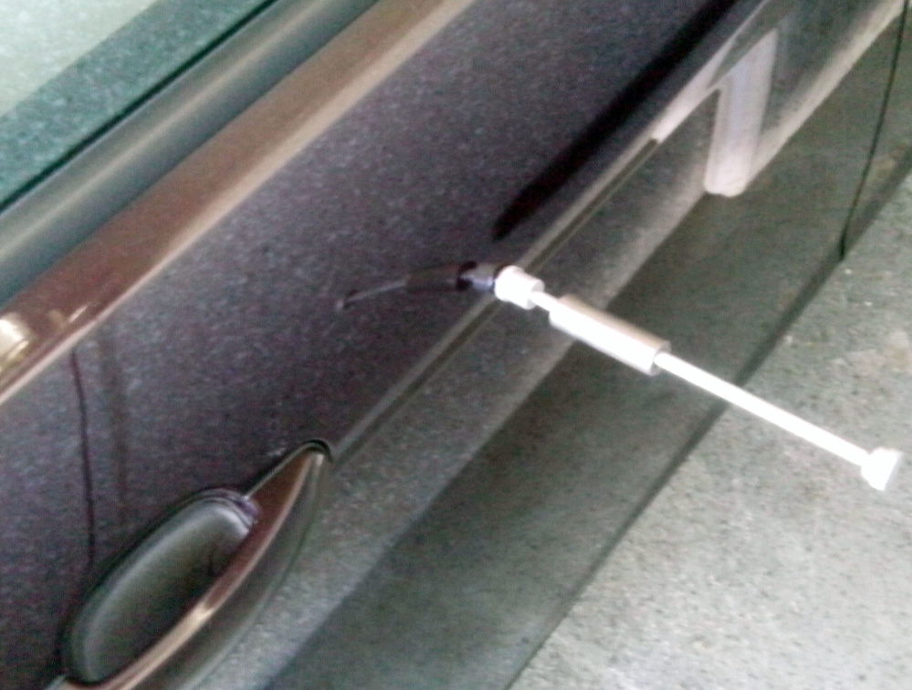 Nakonec jsem se rozhodl pro tu černou variantu, protože se mi po "domácí proceduře PDR" podařilo srovnat původní ťukanec z rozměru 2x5 cm (byl to takový bouchanec, že se sedřel bezbarvý lak na fleku o průměru cca 1cm, viz foto níže) na cca 1x3 cm (asi za 1h hraní, na víc jsem neměl trpělivost) a to jsem tou černou lištou o šířce 2,6 cm překryl tak tak.