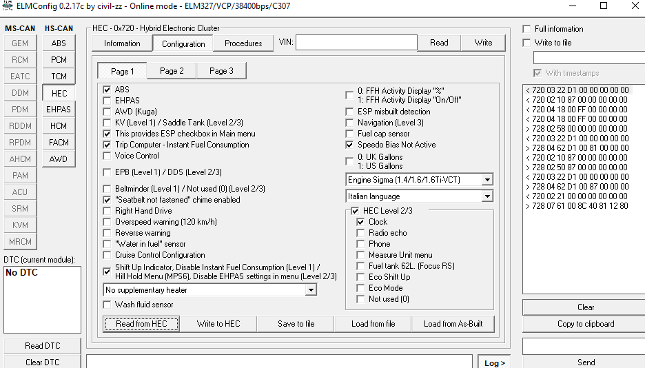 pouzij ELMConfig - HEC - Configuration - Page 1 a ukaz, co tam mas zaskrtle