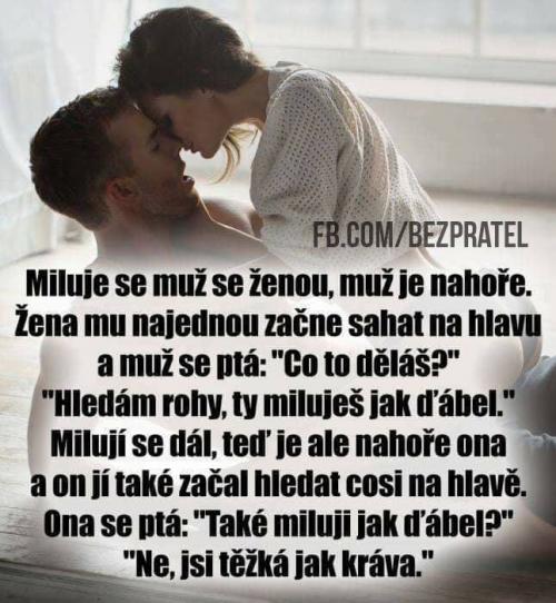 "Ježíšmarjá, vy jste ale kráva, to jsou nápady, vždyť přeci vidíte, že nemám nohy! No to jsem ještě neviděl,