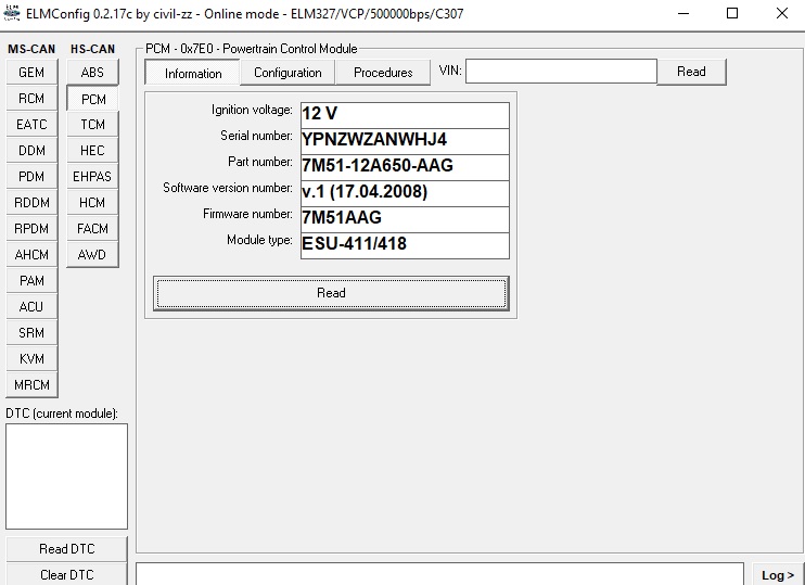 S prodlevou - ale přece - slíbená verze PCM vyčtená pomocí ELMconfig: