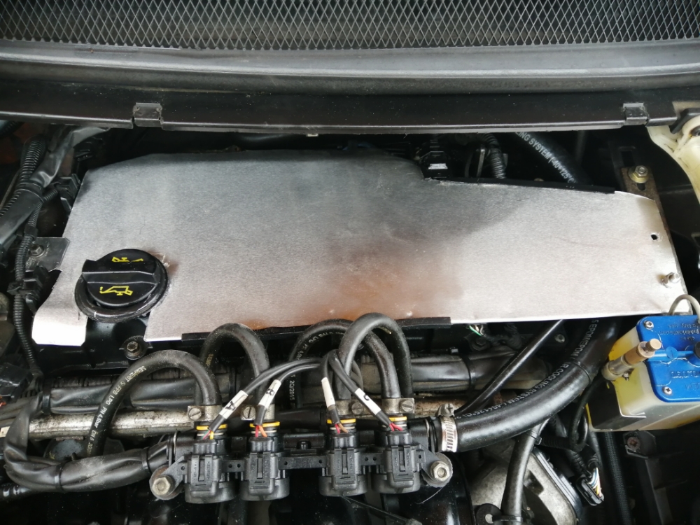 Tak jsem dnes měnil svíčky skrz to že houpal volnoběh a občas cukalo i kabely jsem dal Bosch ale to že původní svíčky byly patinou od vody a bordel v závitu dokonce i jedna svíčka měla konec takový zoxidovaný tak jsem se rozhodl pro radikální řešení , jel do OBI koupil 0,5 hliníkový plech(20x100cm) a měřil vrch motoru. Vystřihnu to s možností (zhruba 20x31 + na zachycení)to zachytit někde za okraje a zleva od víčka oleje je středový šroubek tam to protáhnu na dírku. Hold 1.6 Ti-VCT je v tomhle nedořešená