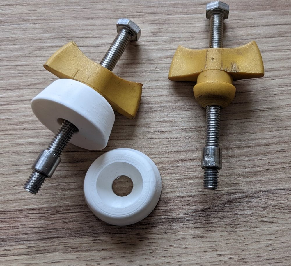 Jinak asi nejjednodušší způsob, tohle úplně vyndat a předělat to na šroub s inbusovou hlavou a pod to podložku. Jen délku šroubu musíš doladit sám.