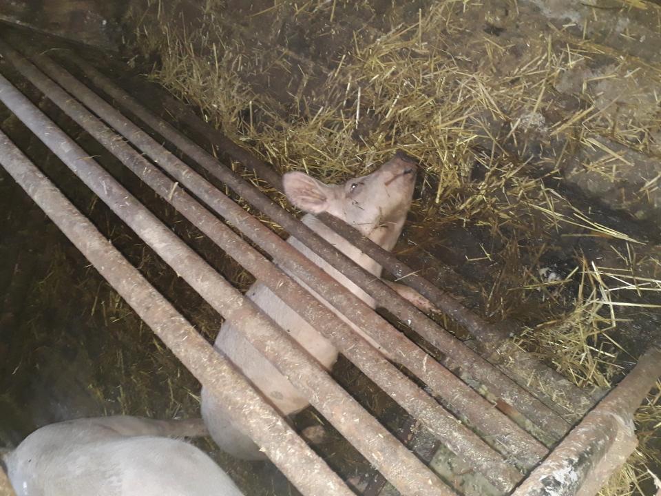 Dnešní ranni záchranná akce. V šest ráno na nás busila osmdesatileta sousedka, že se jim zaseklo prase.