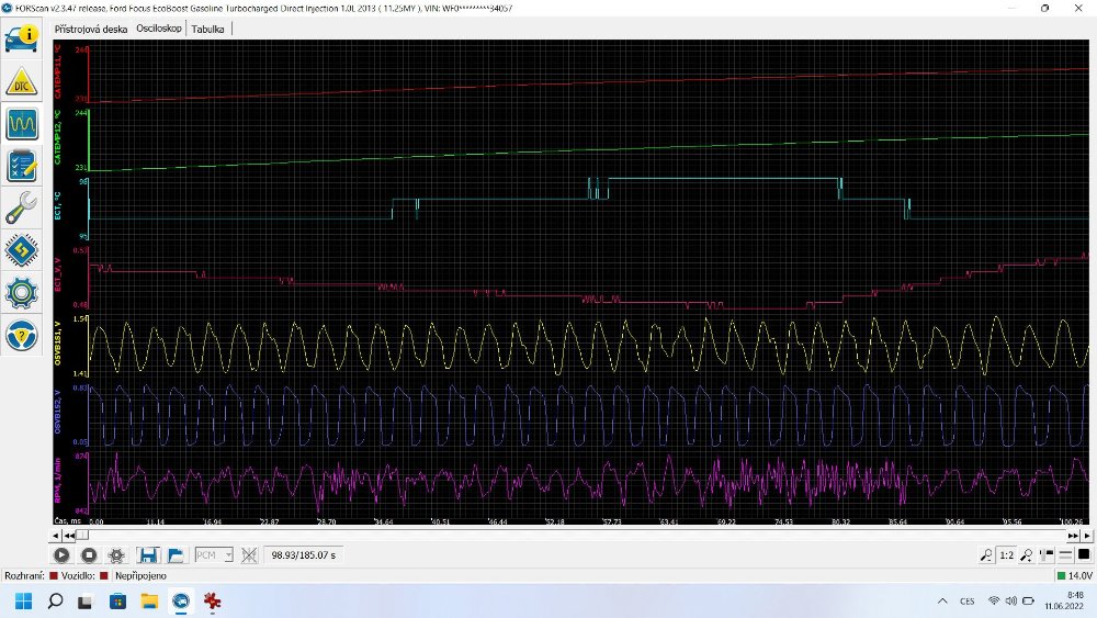 Jj, to jsem samozřejmě udělal, jen z toho nejsem moc moudrej. Oproti ostatním grafum z osciloskopu mě zarážejí ty vysoké hodnoty na přední lambdě.