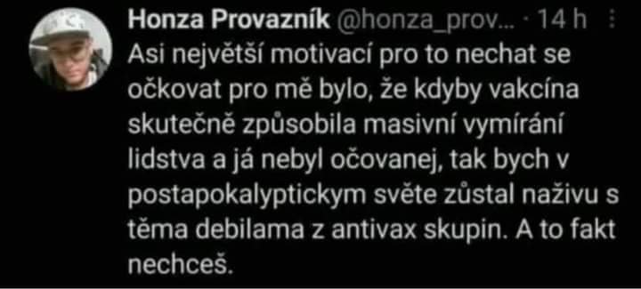 Takze ked sa ukaze, ze nejaky antikovidak klame, tak zrazu tie cisla ludi nezaujimaju.pbjun píše: 04.07.2021 08:28 Vláda nám tvrdí, že přibývají nakaření, problém je ovšem v tom, že tento týden kupa lidí potřebovala testy na dovolenou. Takže procentuálně to nárůst neni - prostě děláme kupu testů navíc tak holt máme více odchycených bezpříznakáčů. Procenta pozitivních testů jsou vesměs stejná.