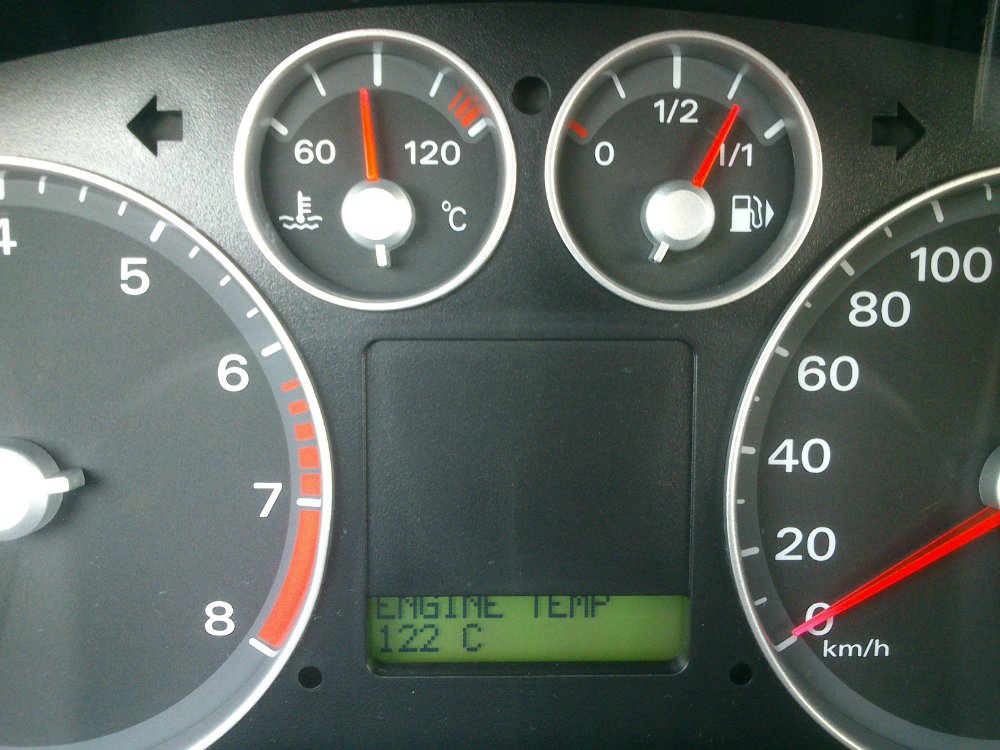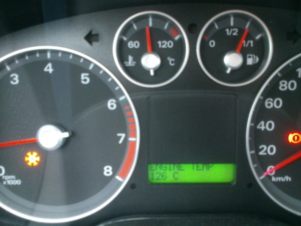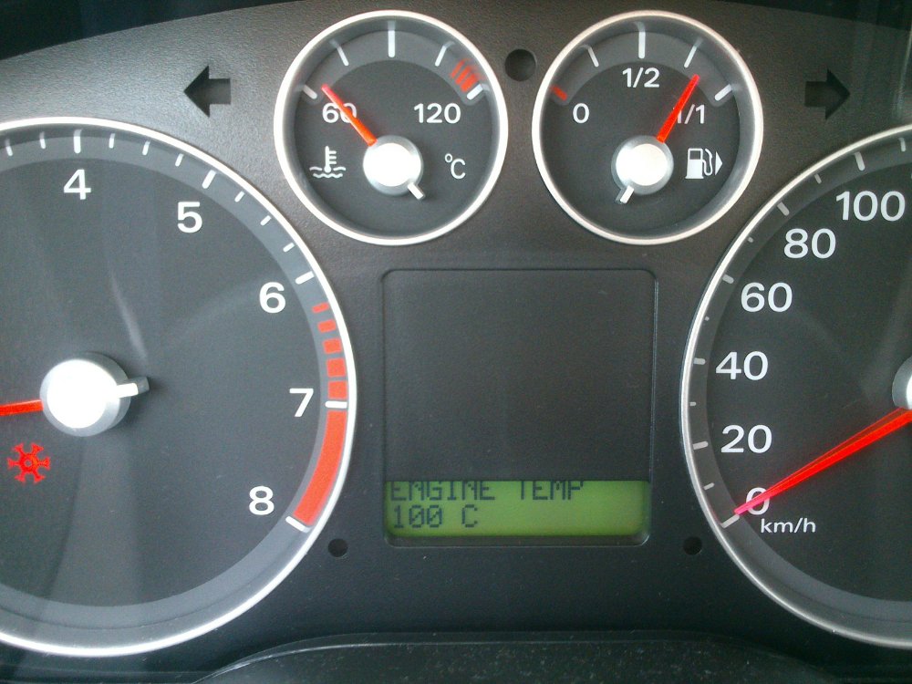 Ručička teploty chladicí kapaliny byla na cca 65 °C a zároveň ukazoval display Engine temp 100°C.