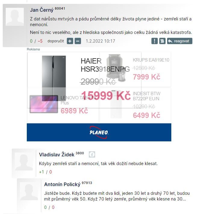 V diskuzi samozřejmě opět svérázný výklad průměrné doby dožití: