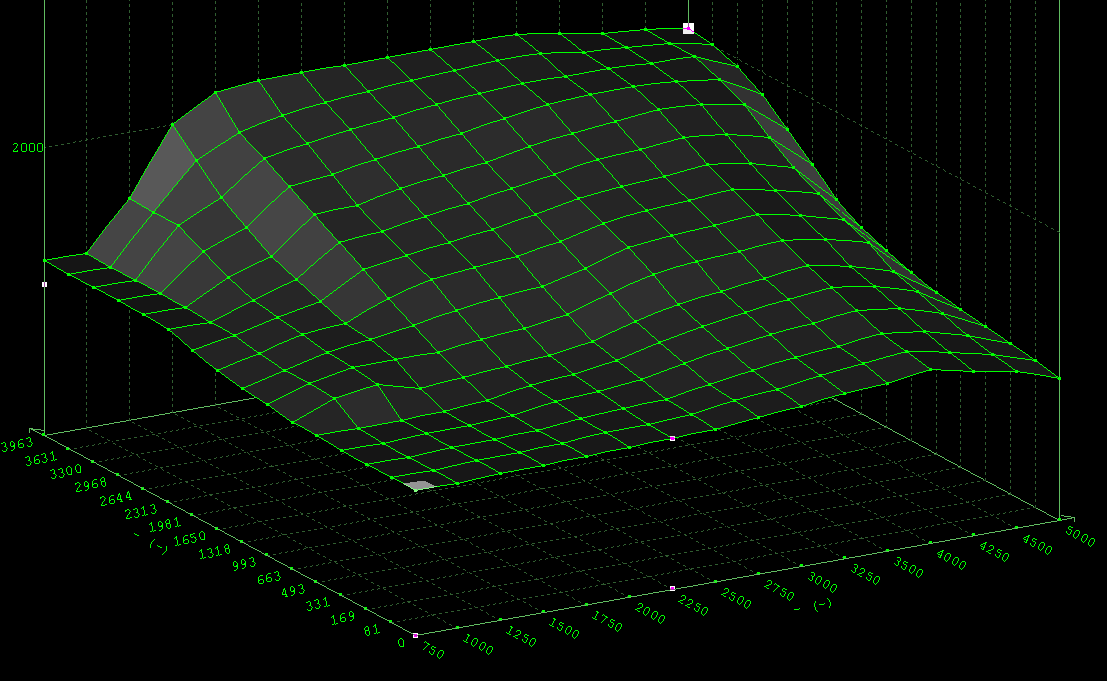 On je trochu problem ze ten tlak je zavisly nejen na otackach, ale i na zatizeni motoru. Treba na miste kdyz to vytocis tak ten tlak naplno nepujde. Plny tlak to dava akorat pri zatezi, takze kdyz das nejaky kopecek na trojku tak by tam od 1800-2000 otacek melo byt cca 220kPa. Tyhle 1.6 maji Bosch ridici jednotku, z ty by se melo dat ziskat i informaci o pozadovanym tlaku kolik chce jednotka. Pak se z toho udela log a porovnaji se hodnoty pozadovanyho tlaku a skutecnyho. Kouknul jsem se do ty ridici jednotky a pridal jsem ti sem 3D zobrazeni mapy pozadovanyho tlaku turba. Na X jsou otacky motoru, Y pozadovany moment a Z je tlak turba v mBar.