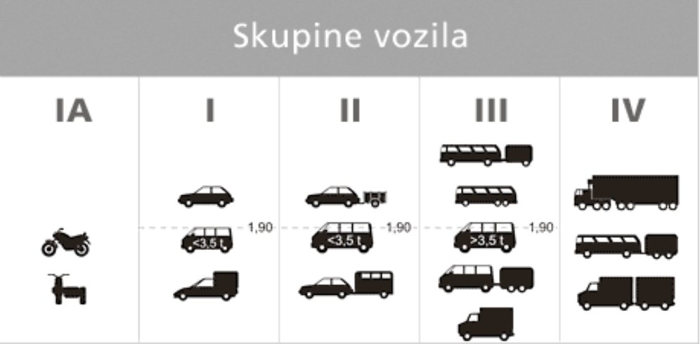 III Motorna vozila s dvije ili tri osovine, visine veće od 1,30 m mjereno kod prve osovine najveće dopuštene mase preko 3500 kg i Motorna vozila iz II b) s prikolicom