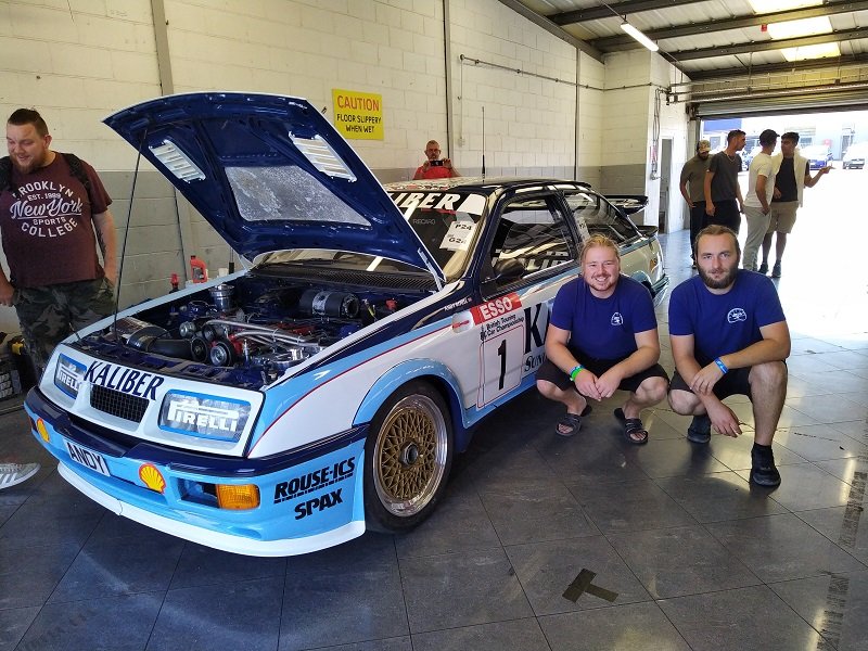 Pořád mě to ale táhlo opětovně do depa. Po cestě do depa vidíme stát bílý Escort RS Cosworth a červený Escort RS Cosworth upravovaný od italského specialistu na Cosworthy Oppligera s hodně velkým turbem Borg Warner. Dále na place stojí ona známá placka, bestie skupiny B. Ford RS200 - kdo by byl překvapen, samozřejmě na značkách. Také jsme našli místní zběsilý Focus Mk1 Combi od Howea. Překopaný na 1,6 EcoBoost z Fiesty. Auto hodně zajimavé z blízka a hodně fungující na trati. Teda, když zrovna jede, protože chudáka Howea dotáhli před depo po tom, co totálně rozthal přední slick. Takže se vyměnilo kolo a pokračoval v další jízdě. Na place jsme viděli další zajímavý projekt. Focus MK1 ST170 - přestavěný bodykitem na RS. Motor 4,0 V8 Toyota/Lexus, dvě turba Td04 z Volva S60, převodovka z BMW a zadní náprava z Nissanu 350z s diferenciálem s omezeným prokluzem. Výfuky v prahu před zadním kolem a to vše v červené barvě, a ano, na značkách.