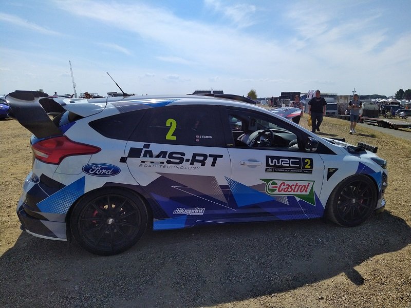 Pořád mě to ale táhlo opětovně do depa. Po cestě do depa vidíme stát bílý Escort RS Cosworth a červený Escort RS Cosworth upravovaný od italského specialistu na Cosworthy Oppligera s hodně velkým turbem Borg Warner. Dále na place stojí ona známá placka, bestie skupiny B. Ford RS200 - kdo by byl překvapen, samozřejmě na značkách. Také jsme našli místní zběsilý Focus Mk1 Combi od Howea. Překopaný na 1,6 EcoBoost z Fiesty. Auto hodně zajimavé z blízka a hodně fungující na trati. Teda, když zrovna jede, protože chudáka Howea dotáhli před depo po tom, co totálně rozthal přední slick. Takže se vyměnilo kolo a pokračoval v další jízdě. Na place jsme viděli další zajímavý projekt. Focus MK1 ST170 - přestavěný bodykitem na RS. Motor 4,0 V8 Toyota/Lexus, dvě turba Td04 z Volva S60, převodovka z BMW a zadní náprava z Nissanu 350z s diferenciálem s omezeným prokluzem. Výfuky v prahu před zadním kolem a to vše v červené barvě, a ano, na značkách.