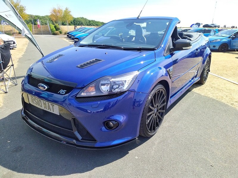 Jízdy pokračovaly během celého dne, takže jsme šli dál po okruhu sledovat, co vše ještě můžeme vidět. Za zmínku stojí určitě stánek hlavního sponzora Mountune. Stály se tam velké fronty v turniketech na prodej dílů - a že to tam chvíli vypadalo, jako kdyby ty věci dávali zadarmo. Za menším hloučkem lidí - závodní verze Ford RS200. Jdeme dále - nacházíme místo se stánky s občerstvením a autokosmetikou. Před ním stojí stará hranatá Fiesta - s motorem YB Cosworth a Turbem T04, přestavěnou na zadní náhon. Majitel patrně šílenec. Asi po další půlhodině procházení mezi zajímavými kousky, které byly různě zatoulané - jako třeba pár Focusů RS MK1, které nestály u hlavního dvojřadu. Co jsme tak pochopili, tak jsou určité zóny, kde jsou určitá auta pospolu a pak ještě zóny, kde jsou kluby. Takže proto se kolikrát objevily auta různě rozházená. Ale bylo to svým způsobem takové pestřejší a vlastně dopředu nikdo nevěděl, co tam bude stát. Po chvíli vidím první Sierru RS Cosworth v bílé barvě a 3dveř s ploutví. Není to RS500, ale první civilní třídveř. Vedle něj Saphire RS Cosworth. Oba kousky přepečlivě umyty a naleštěny. Kousek od těchto krásných kousků procházíme místem, kde byla burza s díly, stánky s různým oblečením, nálepkami, kosmetikou, díly, modely autíček až po občerstvení. Na chvíli odběhnul Mates - ikdyž tam nebylo tak přelidněno jak jsem čekal, během pár vteřin byl pryč. Za chvíli se objevil, drapnul mě a že se asi poseru! - No skoro ano, Ford Capri, ale překopaný dobovým týmem DRM (předchůdci DTM) Zakspeed. Takže na place stál Ford Capri Zakspeed Turbo. Upřímně bych tohle čekal spíše mimo Anglii, ale tohle mě dostalo! Byly dvě varianty motorů - 1,4 Turbo 480koní 9200 ot/min a 1,7 Turbo něco přes 600koní a stejně točící se nesmysl...Přiznám se, že nevím která jednotka v tom byla, ale bylo to šílené, vidět to na vlastní oči a z blízka. Auto z trubek o váze kolem 800kg s takovým výkonem. Masivní bodykit a pod dlouhou kapotou malý brutální mixér, který ve své době neměl konkurenci. Takže zase zpět nohama na zem a jde se dál. O kousek dál nám zase předvedli angličani zlaté ruce a lidovou tvořivost. Focus RS MK2 Cabriolet... To už se po sobě díváme, jestli nemáme úpal, ale tam to asi krom nás 4 nikoho ze židle nezvedalo. Pomalu jsme dostávali hlad, takže jsme se odebrali směrem ke stánku. Po cestě nacházím první Sierru RS500 Cosworth v originál verzi, ale místo T04 bylo turbo Borg Warner. Přicházíme ke stánkům na anglický cheesburger, který byl snad asi nejlepší, jaký jsem kdy jedl, až na uřvanou prodávající, která byla jako papoušek a v okruhu stánků jsme slyšeli jen ji a její " Next please! " . Nicméně sedímena u stolu a díváme se na Mustang Shelby GT500 Eleanor...Po jídle jsme pokračovali v procházce dále. Na jednom place bylo asi 20kousků Fiesty ST200 v šedé barvě. Po cestě vidíme palouk, kde z dálky září oranžová asi 80ks ST Focusů MK2 a MK3, nacházíme Escorty, Mondea, Escorty ve verzi kurýr, Sierru pickup. Mondea ST220....bylo toho tolik, že se to nedalo ani všechno zapamatovat a fotit.