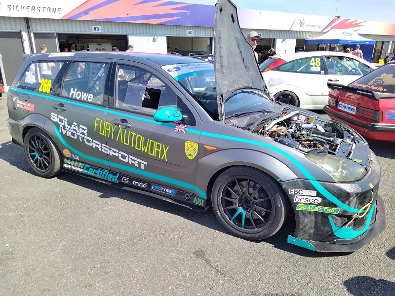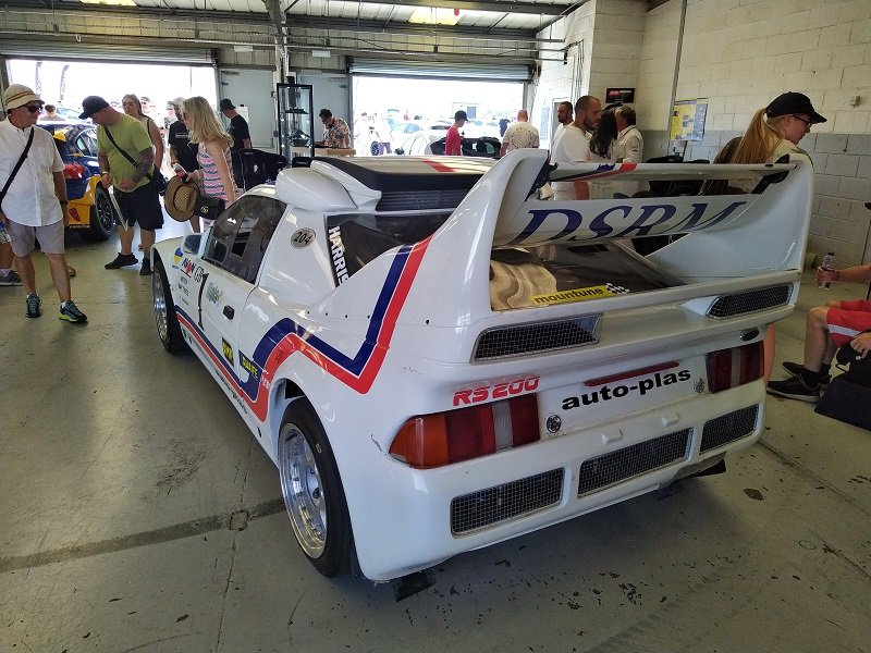 Pořád mě to ale táhlo opětovně do depa. Po cestě do depa vidíme stát bílý Escort RS Cosworth a červený Escort RS Cosworth upravovaný od italského specialistu na Cosworthy Oppligera s hodně velkým turbem Borg Warner. Dále na place stojí ona známá placka, bestie skupiny B. Ford RS200 - kdo by byl překvapen, samozřejmě na značkách. Také jsme našli místní zběsilý Focus Mk1 Combi od Howea. Překopaný na 1,6 EcoBoost z Fiesty. Auto hodně zajimavé z blízka a hodně fungující na trati. Teda, když zrovna jede, protože chudáka Howea dotáhli před depo po tom, co totálně rozthal přední slick. Takže se vyměnilo kolo a pokračoval v další jízdě. Na place jsme viděli další zajímavý projekt. Focus MK1 ST170 - přestavěný bodykitem na RS. Motor 4,0 V8 Toyota/Lexus, dvě turba Td04 z Volva S60, převodovka z BMW a zadní náprava z Nissanu 350z s diferenciálem s omezeným prokluzem. Výfuky v prahu před zadním kolem a to vše v červené barvě, a ano, na značkách.