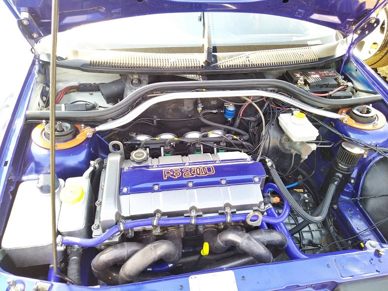 Už jsem v depu! Pro mě totální překvapení a vůbec vrcho celého Ford Fairu. Než jsem tam jel, tak jsem doufal, že někdy uvidím na živo Sierry RS500 Cosworth , ale nečekal jsem že uvidím mojí srdcovku v barvách Kaliber, kterou stavěl a pilotoval sám Andy Rouse, asi vůbec nejslavnější závodník BTCC. kousek od ní pro změnu Sierra RS500 Cosworth od Eggenberger jako jediná ( ikdyž původně samozřejmě černá ) ve světlých barvách Bastos, která vyhrála 24hodinovku na okruhu ve SPA, se kterou jezdil Gianfranco Brancatelli. Jedna z mála levostrancýh RS500. Za okny obou závodních legend papírky s pořadovým písmenem a číslem - takže budou jezdit na trati! K tomu ale později. Pro mě opravdu splnění snu. Stojím u Andyho Sierry a je zvláštní jí pozorovat. Byl to vůz ze sezóny 1989, který sice nebyl tak úspěšný jako ten v sezóně 1988, ale ne o moc. Na první pohled je poměrně dlouhá, až Vás zaskočí jak je úzká a nízká. Závodní verze už měla 17" kola na 3dílných křemíkových BBS ráfcích a pochopitelně na slickách. Byl jsem jako u vytržení, když mi majitel po otázce, jestli mohu nakouknout dovnitř spojeně řekl "Yes, of course" a mohl to vidět i zevnitř. To nejlepší na závěr - stojím přímo před motorem a jen žasnu. Dvoulitrový motor, dvě vačky, 4 válec a turbo T04 natlačené k 2,5 baru a výkon 560koní....Je prostě šílené, že s tím v dobách slávy dokázali jet 189 mph/h ... Okolo tohoto auta jsem stepoval nejvíc a něchtělo se mi od něj vůbec odcházet. Paradoxně, nakonec jsme se k němu vrátili ještě jednou, prostě u mě, to ani jinak nešlo:) Dalo by se v tu chvíli říct, že kdyby jsme po tomhle setkání museli už odjet, já bych odjížděl spokojený a klidný se spokojeným úsměvem!