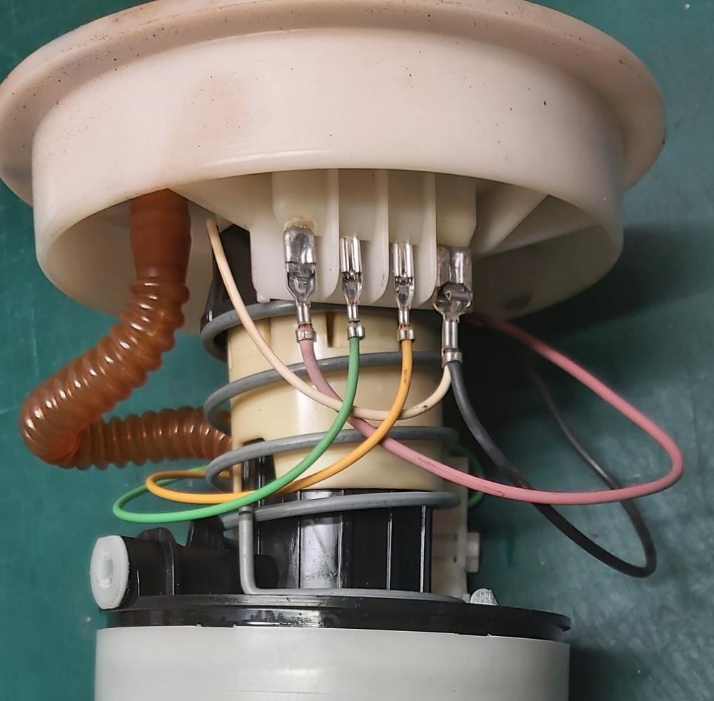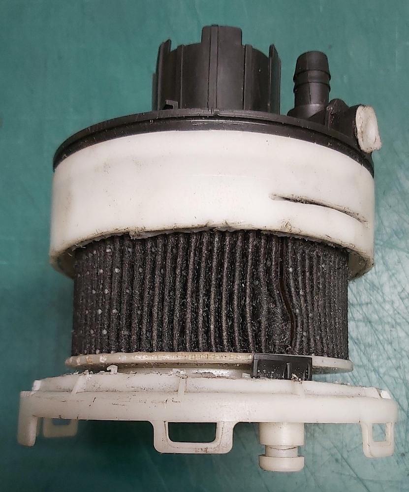 Původní, 12 let staré, čerpadlo jsem prohlédl, určitě nešlo o poškozené kontakty. Zjistil jsem, že je v něm zatavený palivový filtr. Ten byl z jedné strany černý, ale jestli mohl způsobovat závadu si nejsem jist. Jinak by to musel být samotný motorek. Staré čerpadlo před nastartováním vždy zřetelně zavrčelo. Obrázky starého čerpadla jsou v příloze.