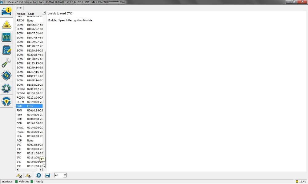 spust forscan znovu a nepouzivej ulozeny profil auta - predpokladam, ze modul SRM tam vubec neuvidis