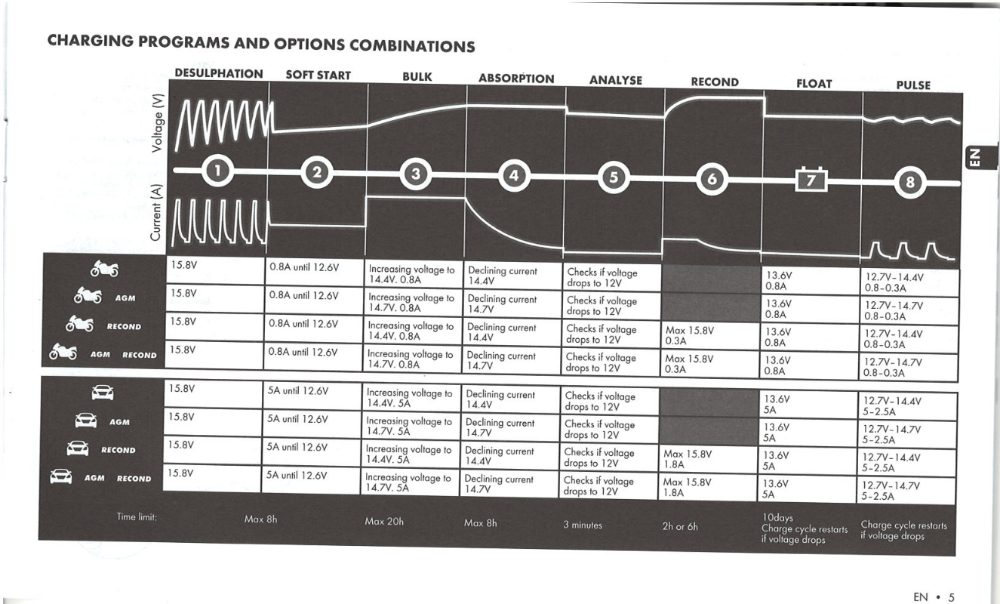 Tady jenom doplnění a sken z manuálu jakým způsobem probíhá nabíjecí proces na CTEKu MXS 5:
