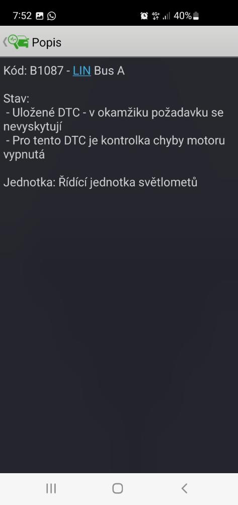 Dnešní diagnostika potvrdila, že chyby tam jsou, bohužel. Teď teda nevím, jestli má smysl zkoušet jinou řídící jednotku, nebo rovnou shánět světlo. Po vymazání zůstala zatím jen chyba B103D - řízení pravého světlometu.