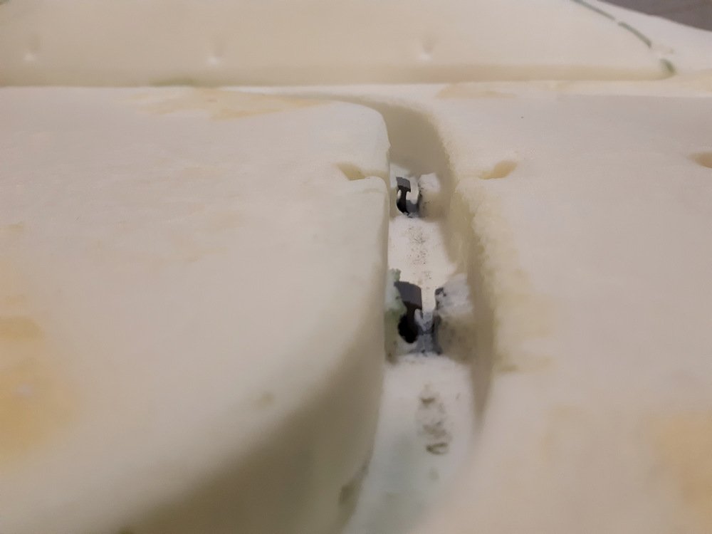 Nyní je potřeba odlepit dečku výhřevu. Ta, na rozdíl od jiných model, u kterých jsem měl tu čest měnit nebo dodělávat výhřev, drží opravdu dobře. Dečka je trošku jiná, není tam mřížka jemných drátů, ale poměrně tlustý drát. Nemusíte se bát, že byste jej přetrhli - přesto ale opatrně. Mě to šlo dolů jen za cenu toho, že se to slouplo i částí molitanu, kterou jsem pak musel pracně oddělat. Asi největší zdržovačka z celé montáže.