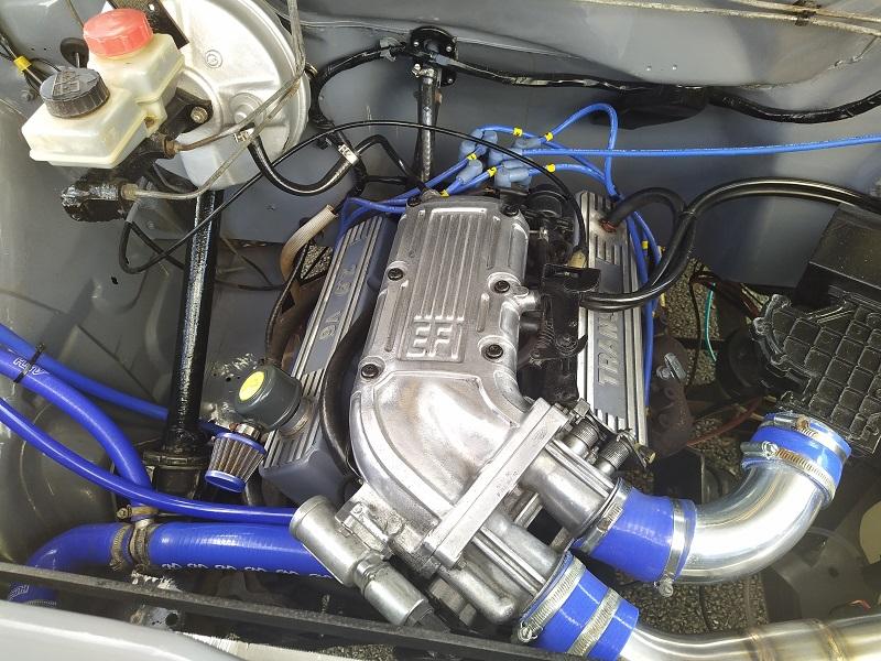 Chtělo se to vrátit nohama trošku zase na zem a myšlenkama zpátky do reality, jenže ono to vlastně moc ani nešlo. Ikdyž tam stojí něco v původním stavu a na oko to není žádná sporotvní verze, u nás to člověk s největší pravděpodobností neuvidí, a pokud ano, tak rozhodně ne v takovém stavu. Krásným příkladem dva vedle sebe stojící Escorty MK3 veverzi Courier, dvě krásné sériové Fiesty MK2, dvě naprosto krásné Anglie, nebo v řadě stojící 4 nádherné Fordy Capri. Chvíli jsme zase nevěděli, kam se dívat dřív, bylo tam toho tolik, že se to dalo těžko vstřebávat. Vedle stojících Capri stál z venku nádherný Ford Escort RS Cosworth - na první pohled sériový - tento moment dlouho nevydržel, když jsem viděl jak velké měl turbo, nezbývalo nic jiného, než nad tím zakroutit hlavou...Sotva tohle člověk rozdýchá, naproti stojí Escort MK1 kostička ve verzi kupé-kombi...Samo o sobě je tato verze velice vzácná, ale majitel zřejmě taky dobrodruh - motor Cosworth YB a auto na 13-ti palcových kolech s nízkoprofilovými pneumatikami. Jestli toho blouznění na slunci nebylo do té doby málo, tak kousek od těchto aut stály v řadě 4 Sierry ve verzi pickup....Dvě s pohonnou jednotkou V6 a dvě s jednotkou Cosworth YB...Už se začala pomalu dostavovat agónie z toho všeho kolem, ale ten hlavní " úpal " teprve přišel. Vrátím se nyní ke zmíněné Sieře, která byla na trati - ano, ten kombík na 17" plechových kolech, který střílel za každým kvaltem a udolal okruhový Escort RS Cosworth...Otevřená kapota mě vyloženě lákala, abych tam strčil hlavu a zjistil, co za peklo se tam schovává. Nijak zvláštní překvapení se nekonalo, protože už z jízdy na trati podle zvuku a projevu jsem věděl, že to bude určitě YB od Cosworthu, a samozřejmě, že bylo. Vedle motoru velké turbodmychadlo BorgWarner...Na bočním okýnku za řidičem byl na papíru celý rozpis úprav auta. Pokusím se fotku nahrát, protože to bylo hodně zajímavé čtení. Každopádně Sierra měla 651 koní , 525 Nm kroutící moment, sekvenční převodovku a mnoho dalších věcí. :irre: Rovnou mohu prohlásit, že mě to počtení docela odrovnalo a už jsem se nezmohl ani na to, kroutit nad tím hlavou - obvzlášť, když jsem viděl ty plechové disky, auto, ve kterém nebyl ani rám a korunou tomu všemu byl volant - obyčejný sériový volant z prvních modelů Sierry - takový ten, co má trojúhelníkový střed a jen dvě ramínka dole...V tu chvíli jsem přestal na chvíli mluvit a šel kam mě nohy nesly...