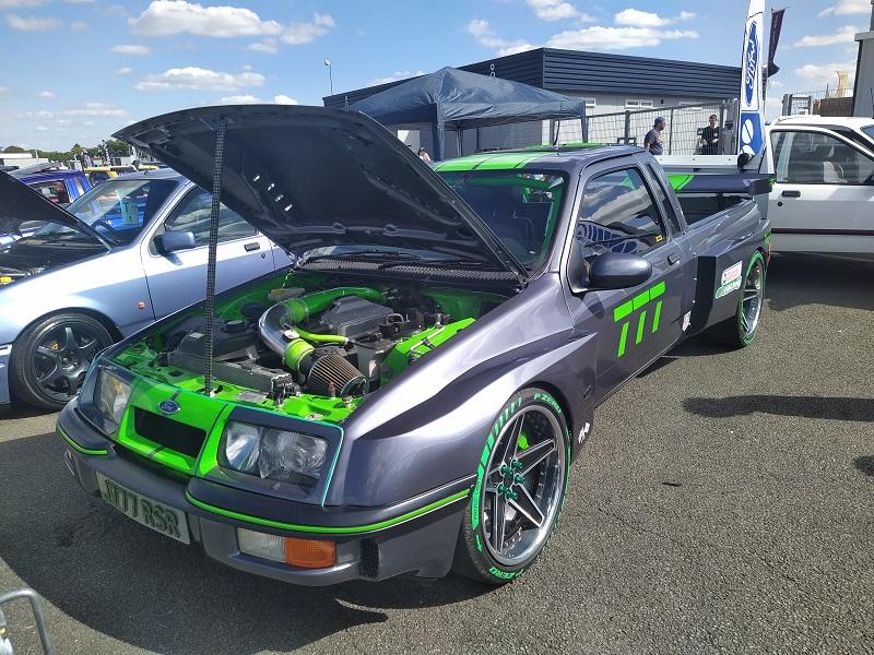 Procházíme se dále - aut bylo tolik,že jsme nevěděli, kam se dřív dívat. Samozřejmě, že v hledáčku jsem měl to nejoblíbenější a to Sierru RS500 Cosworth v sériovém stavu a byl jsem zvědavý, jestli najdeme letos i nějako závodní. Asi mám na to auto opravdu "čuch" , našel bych ho snad i po tmě. Našli jsme je na vyvýšené ploše - dvě krásné RS500 za sebou - černá a bílá. Doslova pastva pro oči, auto, které zbožňuju, chci a kterého se neskutečně bojím. Stepoval jsem kolem nich opravdu dlouho, ale bylo potřeba se pohnout dál, protože na objevování toho bylo stále moc. O kousek dál pro změnu "jen" dvojice RS Cosworth v černé a krásné Moonlight modré barvě. Dále zde byla dvojice Escort RS Cosworth. Opravdu nádherné byly Fiesty XR2 nebo Escort RS Turbo. O kus dál byla zajímavá sekce, kterou jsme před dvěma lety neviděli - byla zde sekce off roadů - na co si vzpomenete od Rangerů, přes F150tky a dokonce i od výkonostních úpravců - upřímne, je zvláštní vedle toho stát a dívat se na ty monstra.