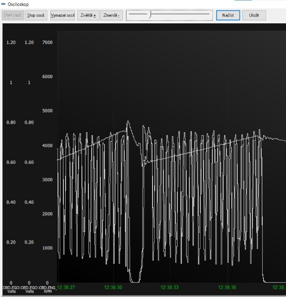 Snímač klapky jsem dával nový. Dnes jsem měřil přední a zadní lambda sondu. Má to takhle vypadat? Měl jsem to barevně označené, ale po načtení uloženého záznamu barvy zmizeli...