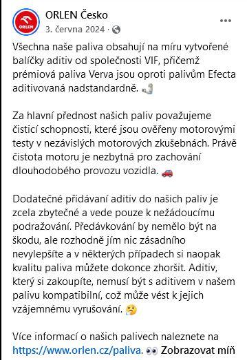 Mimochodem aditivovaný Orlen, je aditivovaný VIFem. Jen nevíte, jestli v tom poměru, co doporučuje VIF, nebo méně. Pokud si jej dáváte sami, máte příplatek cca 0,5kč/l benzínu v požadovaném poměru.