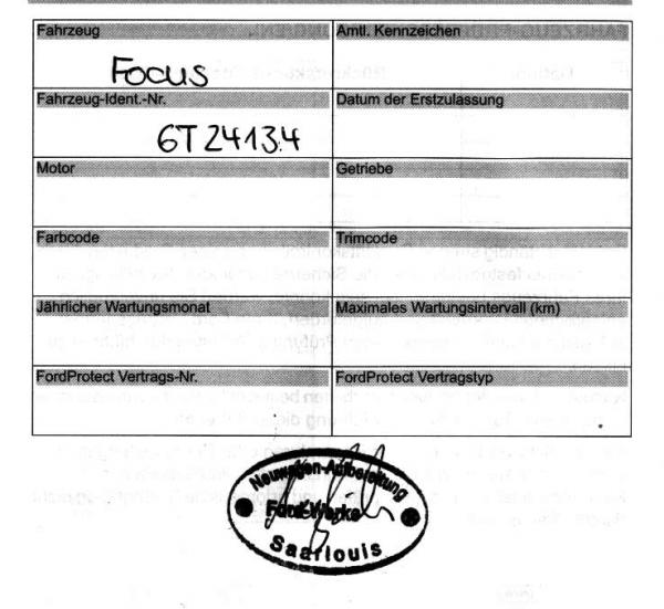koupil jsem si Ford Focus 1,6 Combi, vyrobený v 03/2007, záruka Ford Protect 3letá - uváděl prodejce - a jak jsem zjistil je to pravda.