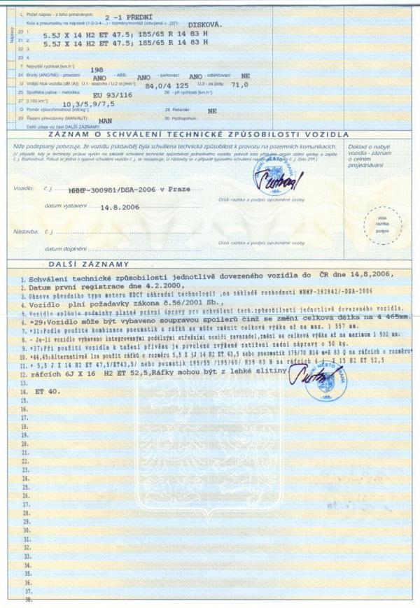 Ty rozměry pneu jsi tam chtěl Ty nebo Ti je tam napsali na úřadě? Ptám se, protože v TP mám orig zapsaný 205/50 R16 a jiný rozměr mi už nedopsali při zápisu ráfků 7,5J x16.