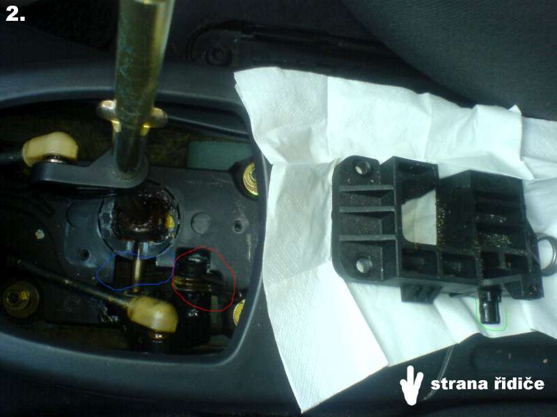- takze po odstraneni hlavy radici paky a krytu spatrime zaplombovanou prevodovku a pod vrchnim plastovym krytu vydime kousek nasi pruziny