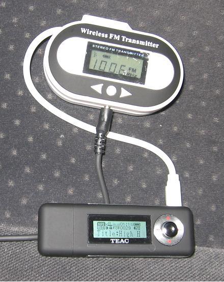 Já mám takový za 600,- ale teď nevím značku. Lze tam připojit flash kartu, to se ovládá tlačítky na tom transmitteru anebo se připojí mp3 přehrávač do jiné zdířky, a to se pak ovládá normálně ta Mptrojka.