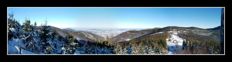 Nádherný rozhled od Jeseníků, přes Lysou Horu až k Roháčům.