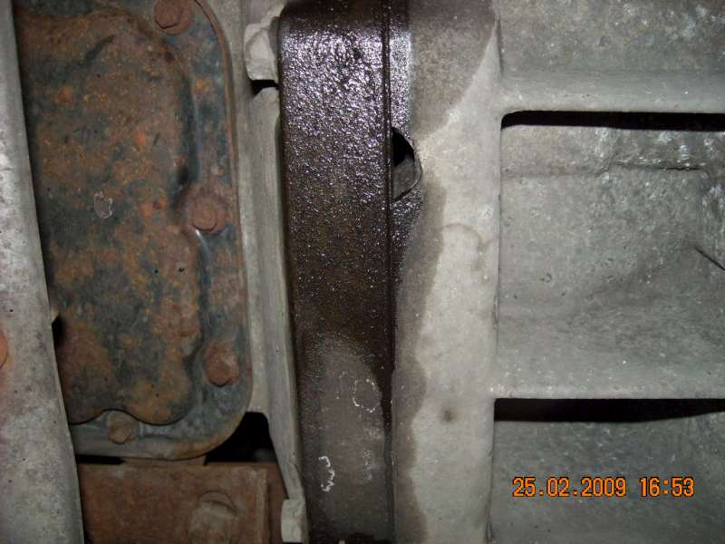 tys takovouhle ránu 100% nedal, když to utrpělo tuhle nemoc byla ta převodovka nebo motor od sebe hodně daleko, bylo by to uražený na obou dílech příruby a dle mého je tohle díra odtoku oleje ze spojkové skříně né ????